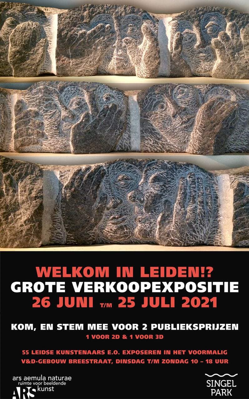 Kom vanaf 26 juni naar de grote verkoopexpositie “Welkom in Leiden!?”, in het voormalige V&D gebouw, dinsdag t/m zondag tussen 10- en 18 uur. Zaterdag 10 juli ben ik aanwezig om je ontvangen!